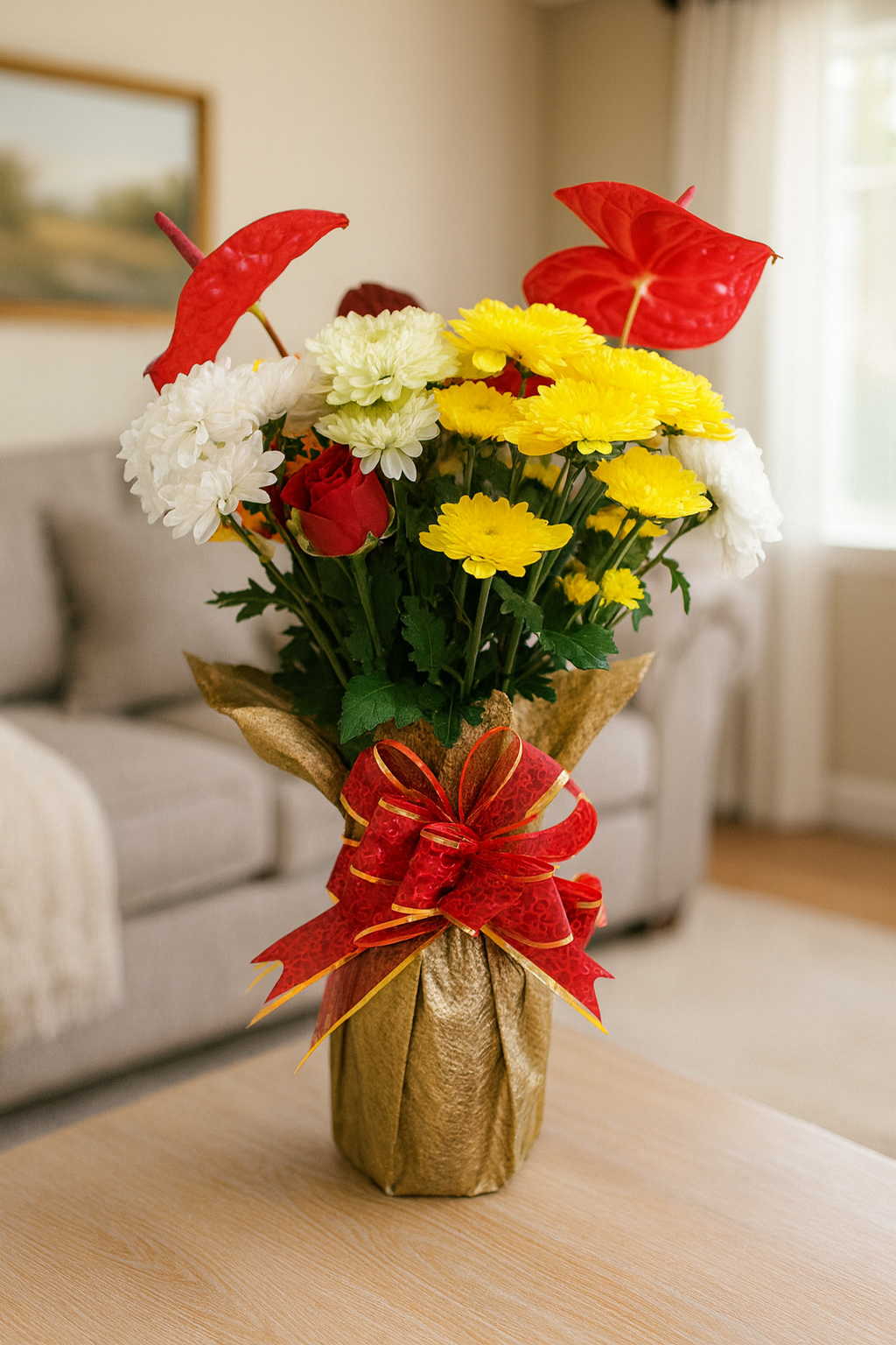 Whether it’s for a birthday, a thank-you, or simply to light up someone’s day, this radiant vase bouquet is a heartwarming gift that speaks volumes.