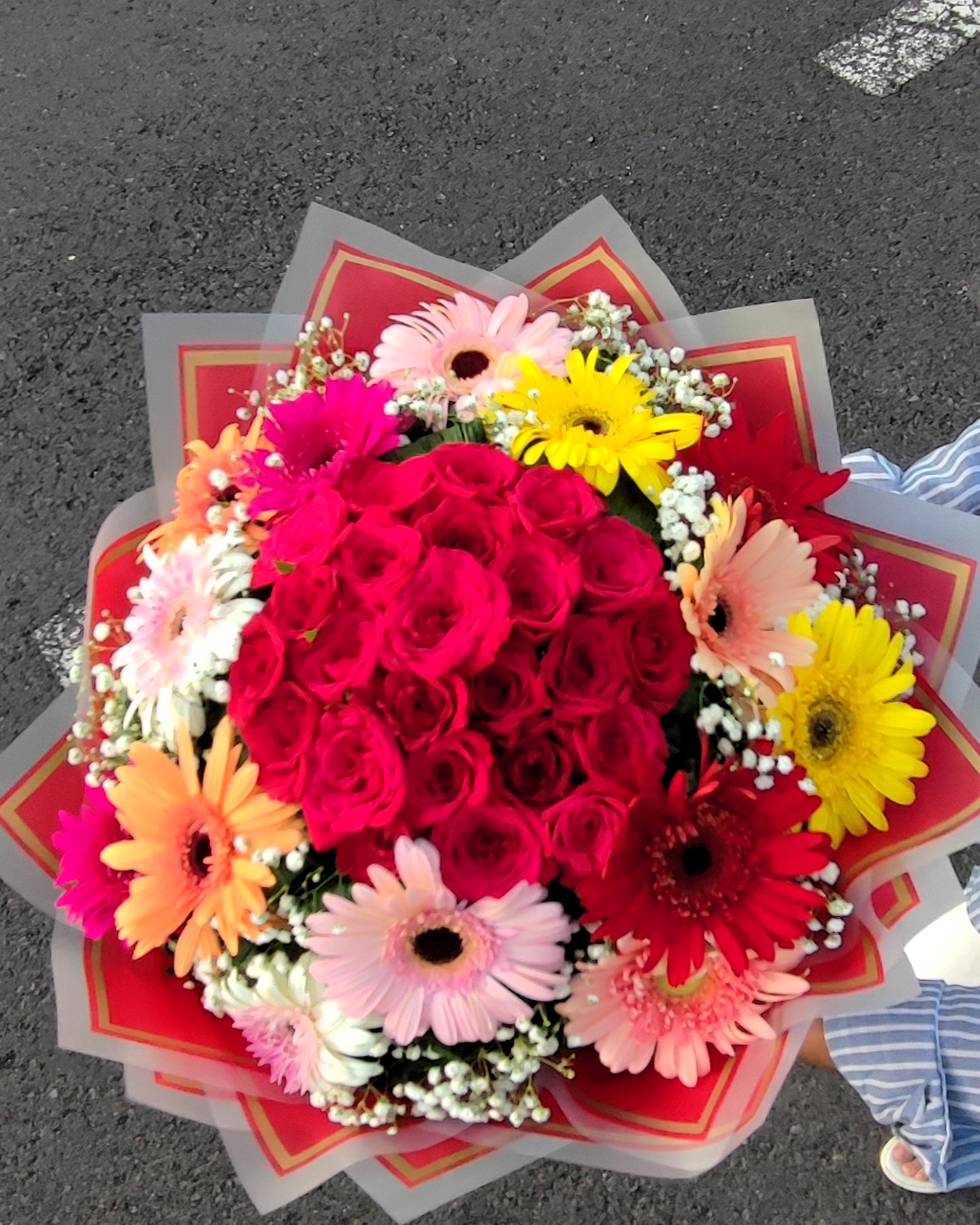 To keep your bouquet elegantly presented, wrapping and ribbon colors may vary based on stock availability. However, we always ensure they complement the bouquet beautifully and match the styles shown.