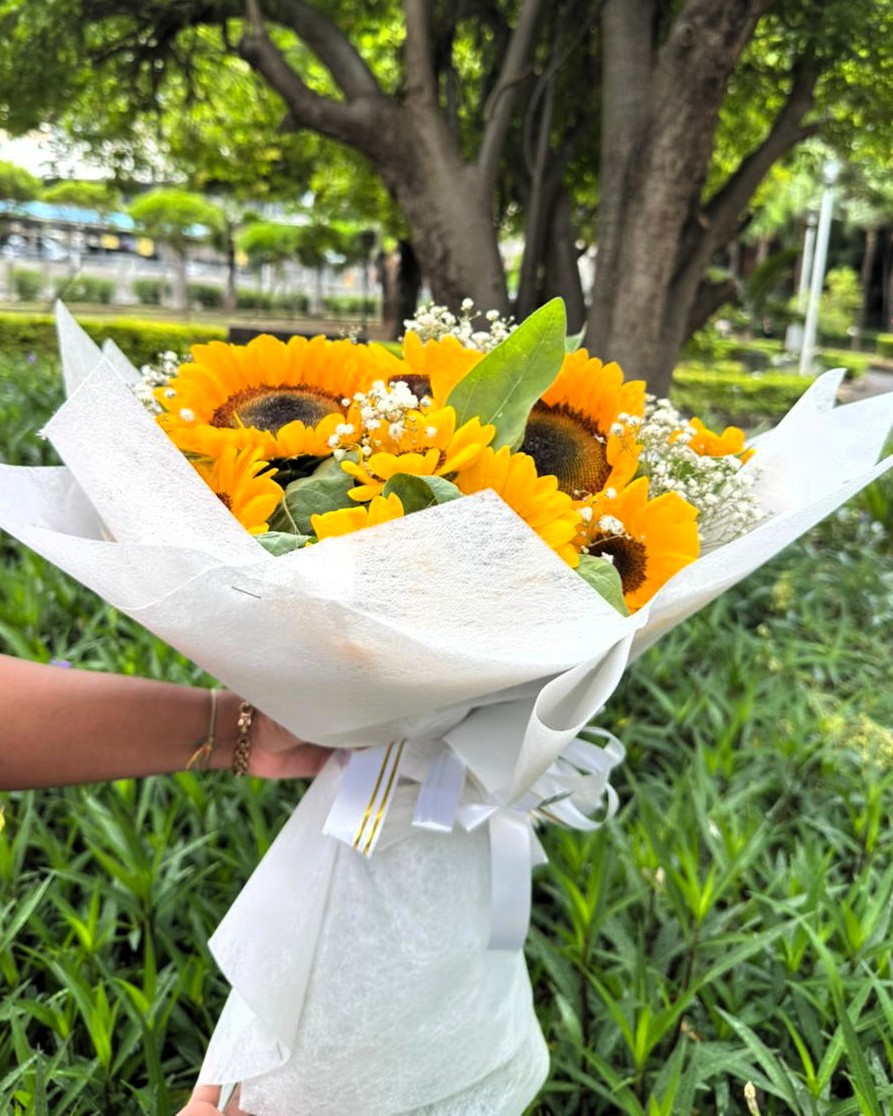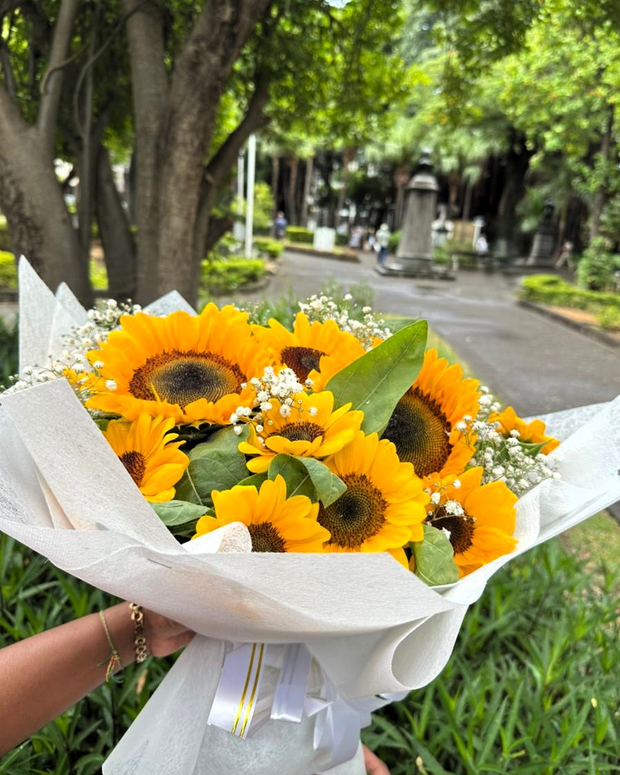 A sunflower bouquet that feels like holding a piece of sunshine in your hands. Bright, bold sunflowers bloom at the heart of this design, softened by delicate baby’s breath and fresh green foliage for a perfectly balanced, uplifting look. “Solar Whisper” is made to spark joy instantly. It carries warmth, positivity, and that effortless glow that makes someone smile the moment they see it. Whether it’s to lift someone’s mood or celebrate a happy moment, this bouquet delivers pure good energy.